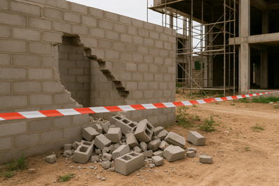 Même pour un chantier “simple” — une villa R+1, une clôture, une extension — les risques sont nombreux : effondrement partiel, chute d’un ouvrier, vol de matériaux, sinistre lié à une mauvaise manipulation…