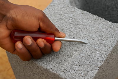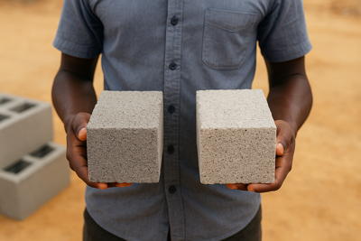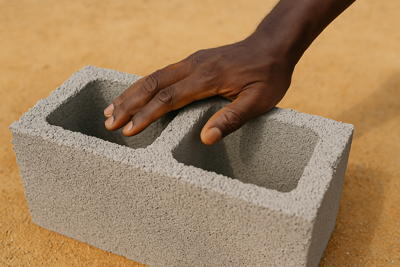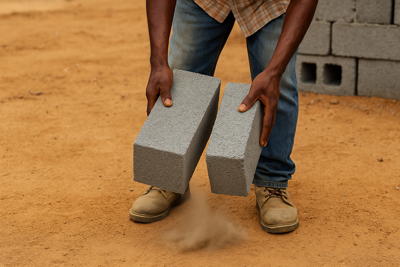 Un bon parpaing ne doit pas être trop léger. S’il est trop léger, c’est souvent signe de dosage faible en ciment ou d’excès de sable, ce qui réduit sa résistance mécanique.