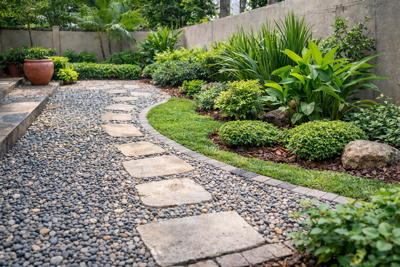Les bordures (en béton, pierre ou plastique rigide) sont également essentielles : elles évitent l’envahissement incontrôlé des plantes et donnent un aspect net sans effort quotidien.