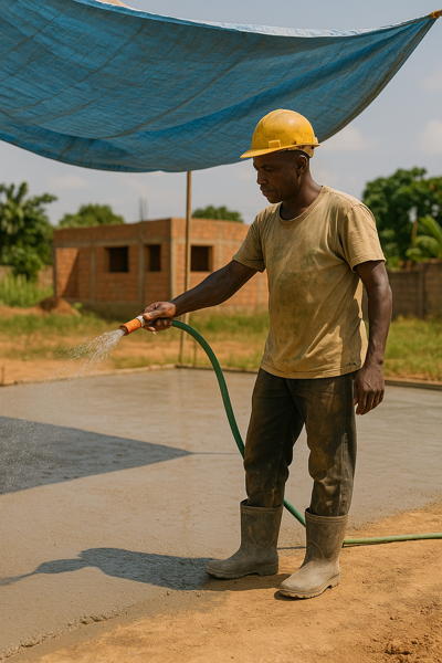Sous les températures élevées de Côte d’Ivoire, la prise du béton s’accélère fortement. En pleine journée, la chaleur peut provoquer une évaporation rapide de l’eau en surface, entraînant des fissures de retrait plastique en seulement quelques heures.