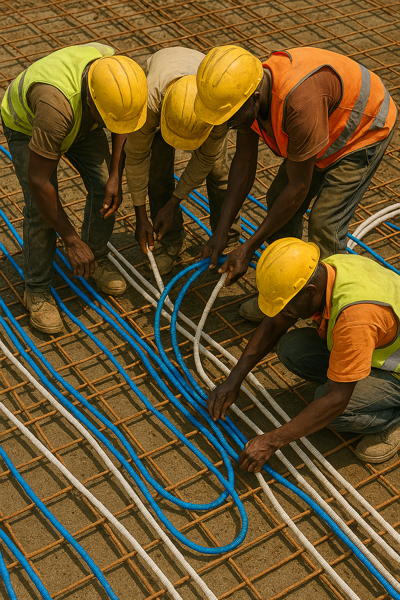 Avec l’essor rapide des maisons R+1 et R+2 dans les communes périphériques (Bingerville, Songon, Anyama, Grand-Bassam…), la dalle n’est plus une simple “étape”. Elle devient un élément stratégique, car elle porte directement les futures charges verticales.