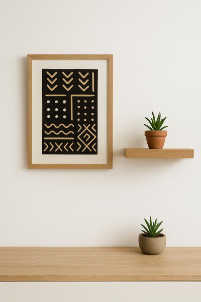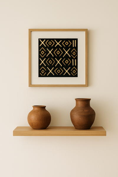 Touches locales ivoiriennes : bogolan, poterie, rotin, mini sculptures… mais en petites touches