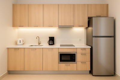 Frigo + micro-ondes + plaques