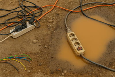 Pluies soudaines, humidité élevée, flaques d’eau autour des rallonges → risques de courts-circuits accrus.